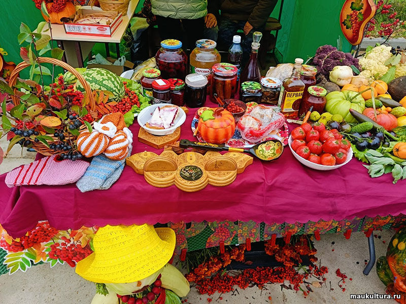 Как по волшебству, на площадке возле ДК появились красиво украшенные палатки со всякой снедью: осенними припасами, вкусной выпечкой, различными угощениями, разносолами и деликатесами. Глаза разбегались от такого изобилия!