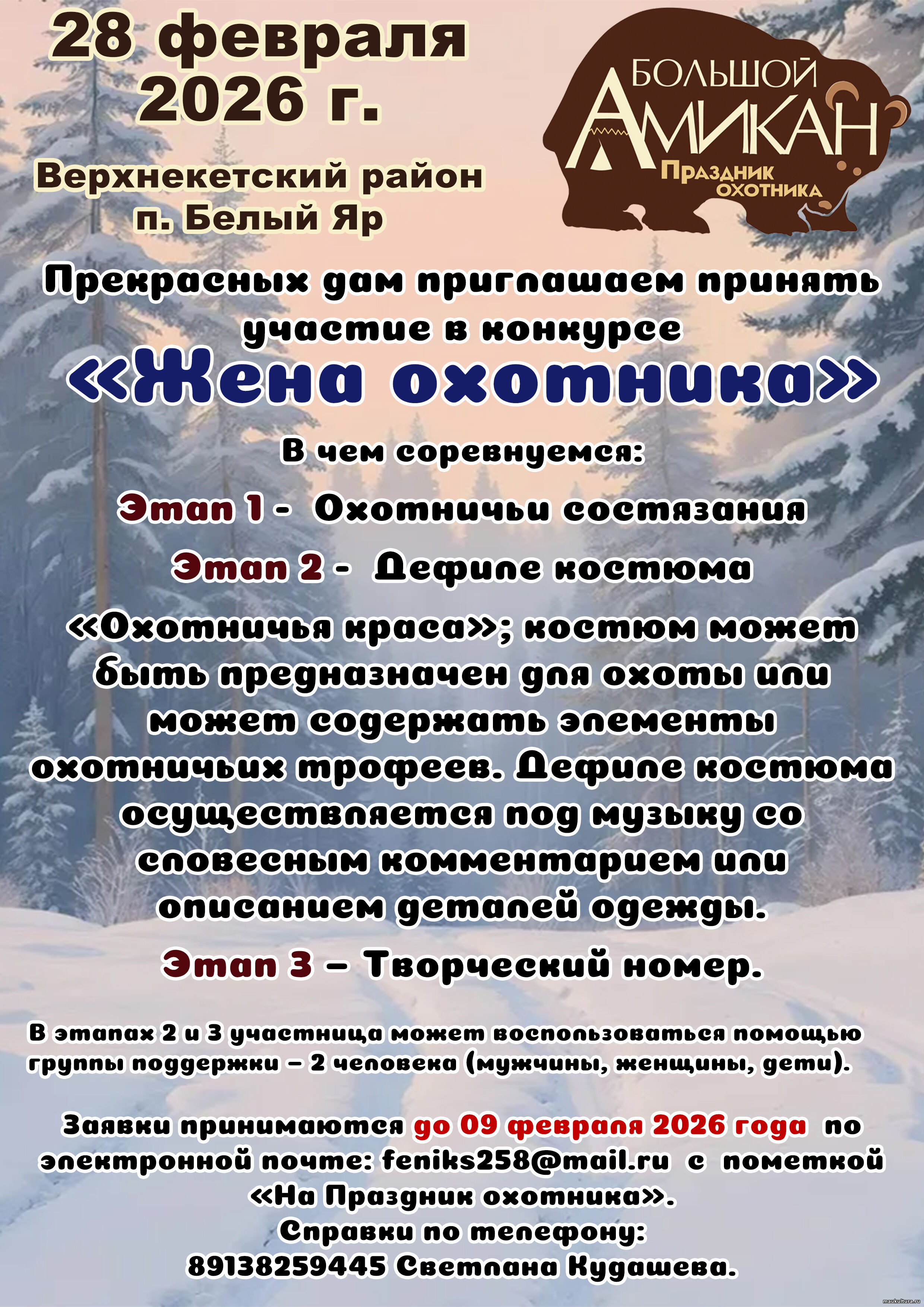 9 марта в Белом Яре состоится пятый районный Праздник охотника «Большой Амикан».