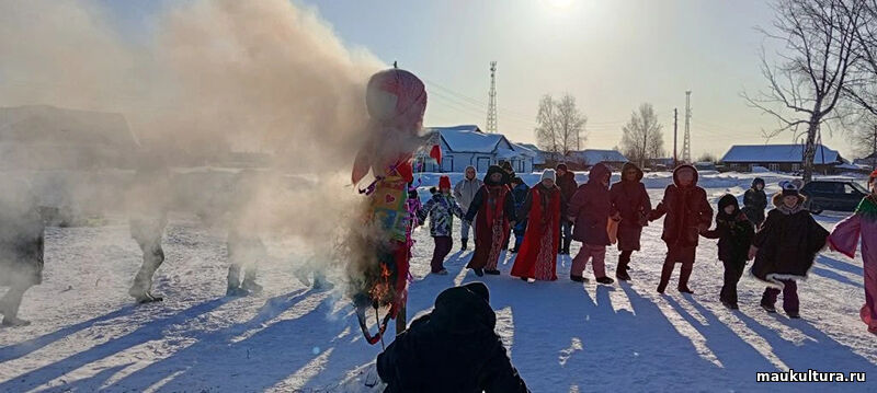 В конце праздника, по традиции, на чучело привязали ленточки желаний, встали в большой хоровод и сожгли чучело Зимы.
